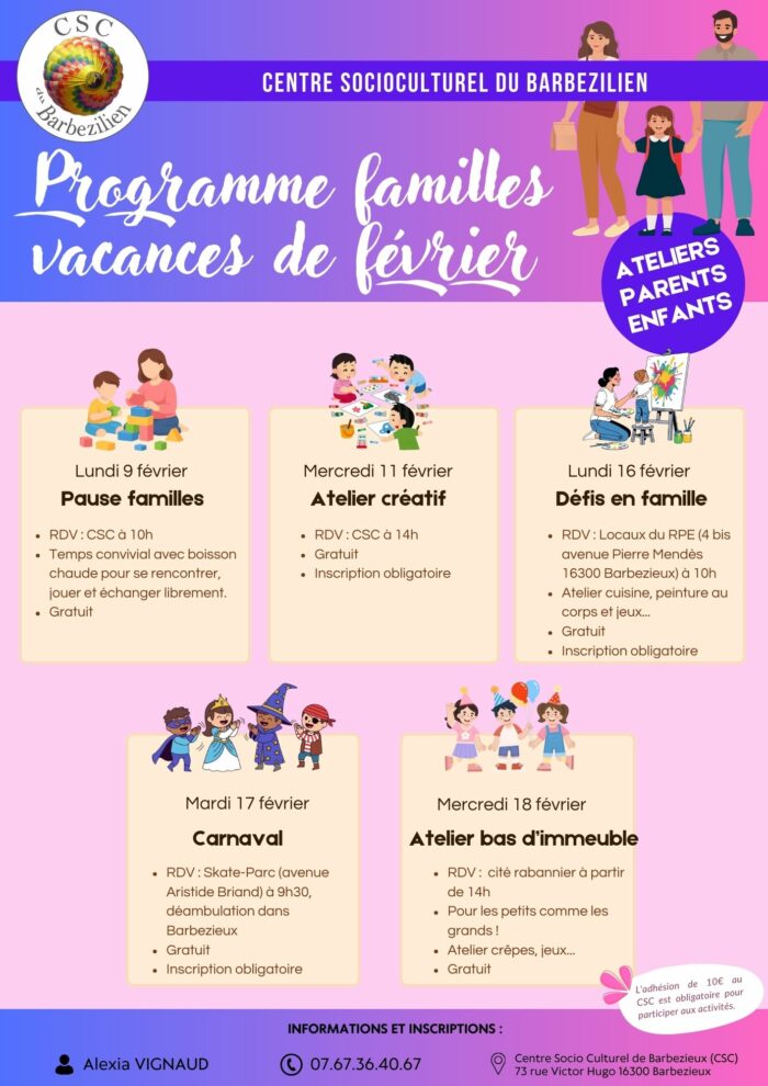 Le Centre Socioculturel du Barbezilien vous propose un programme pour toute la famille !