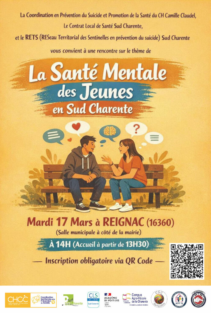 Une action de la Coordination en Prévention du Suicide et Promotion de la Santé du Centre Hospitalier Camille Claudel, du Contrat Local de Santé Sud Charente et du Réseau Territorial Sud Charente des Sentinelles en Prévention du Suicide, avec un ensemble de partenaires : Education Nationale Charente, Lpa Félix Gaillard, Centre Socioculturel du Barbezilien, Maison de Protection des Familles, Gendarmerie de Charente, Association Biker Contre Harcèlement 16.