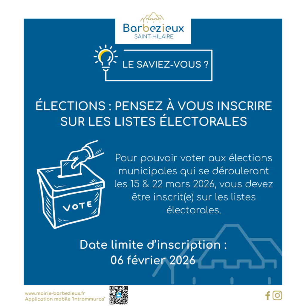 Pour pouvoir voter aux prochaines élections municipales, qui se dérouleront les 15 & 22 mars 2026, vous devez être inscrits sur les listes électorales.