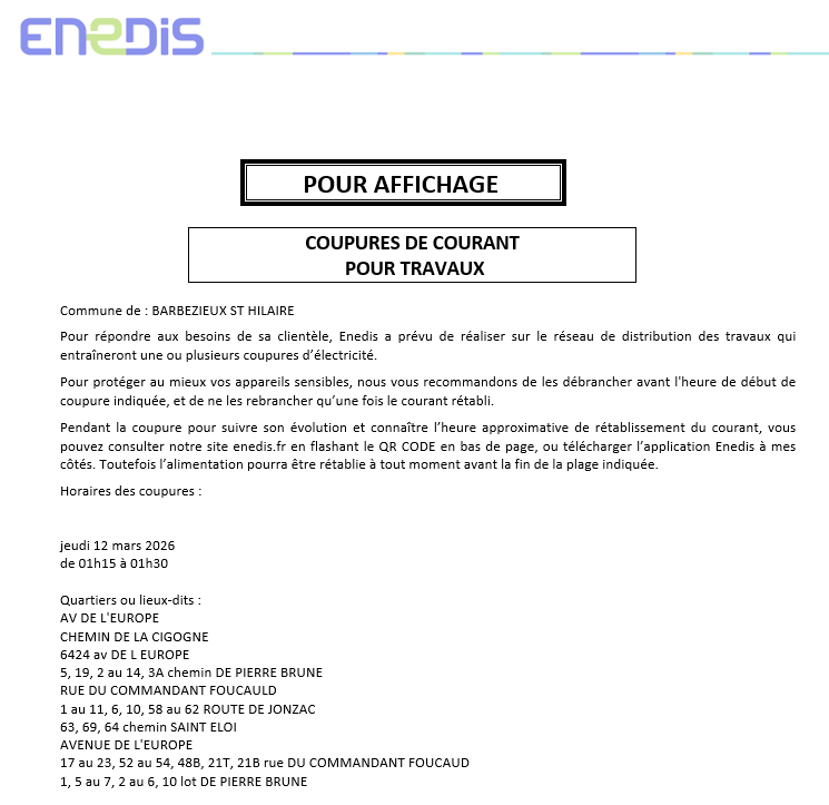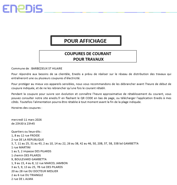 Attention, des coupures de courant pour travaux sont prévues :