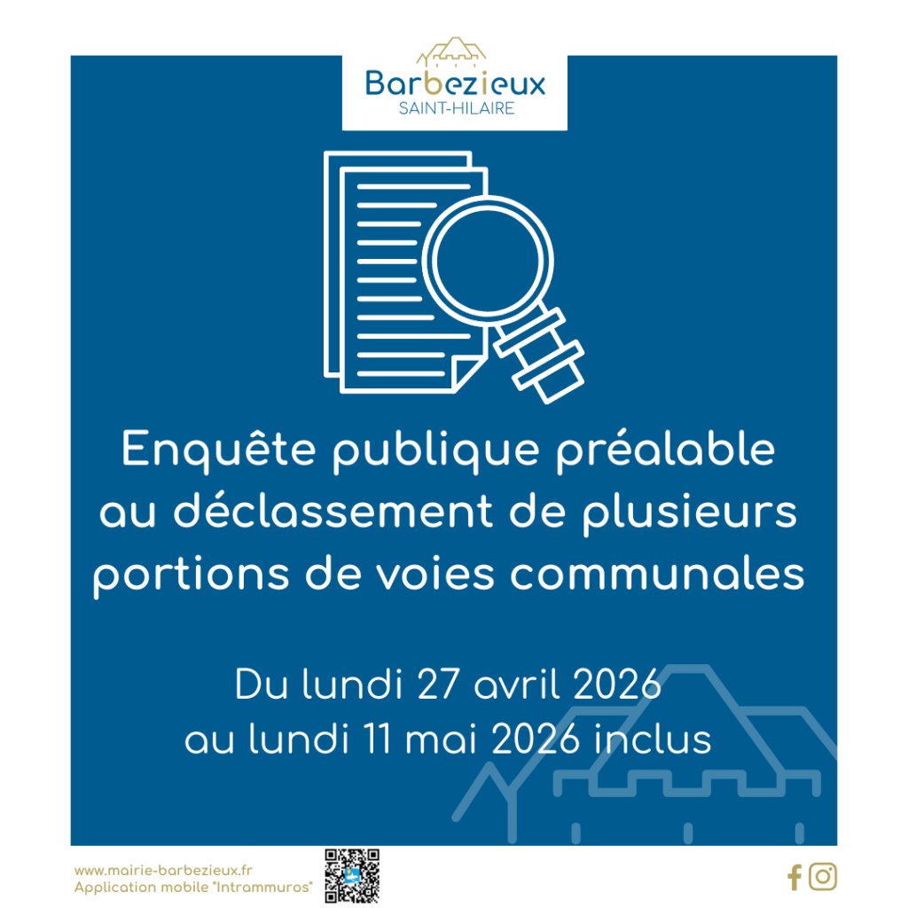 déposés en mairie de Barbezieux-Saint-Hilaire pendant toute la durée de l’enquête soit du lundi 27 avril